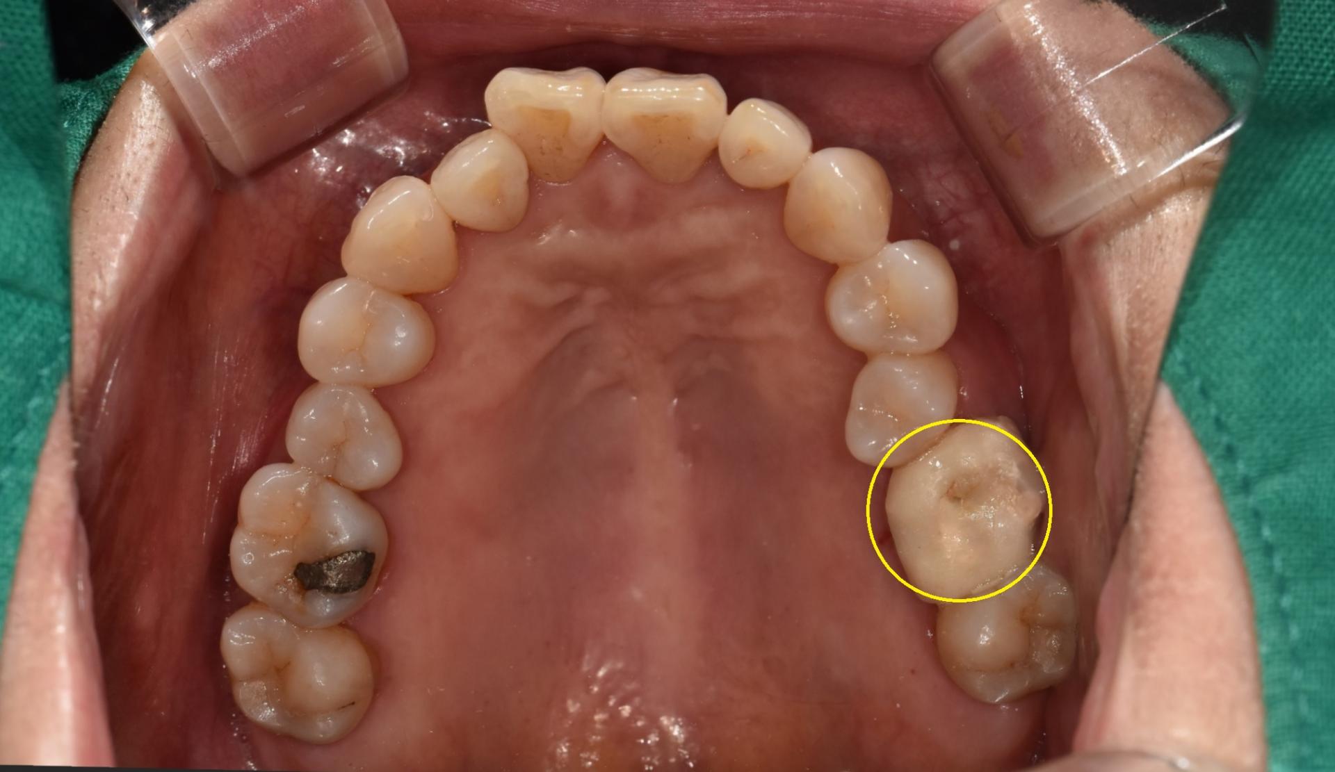 통증은 없다고 하셨으며 과거 수복했던 재료가 조금 남아있는 상태였습니다.