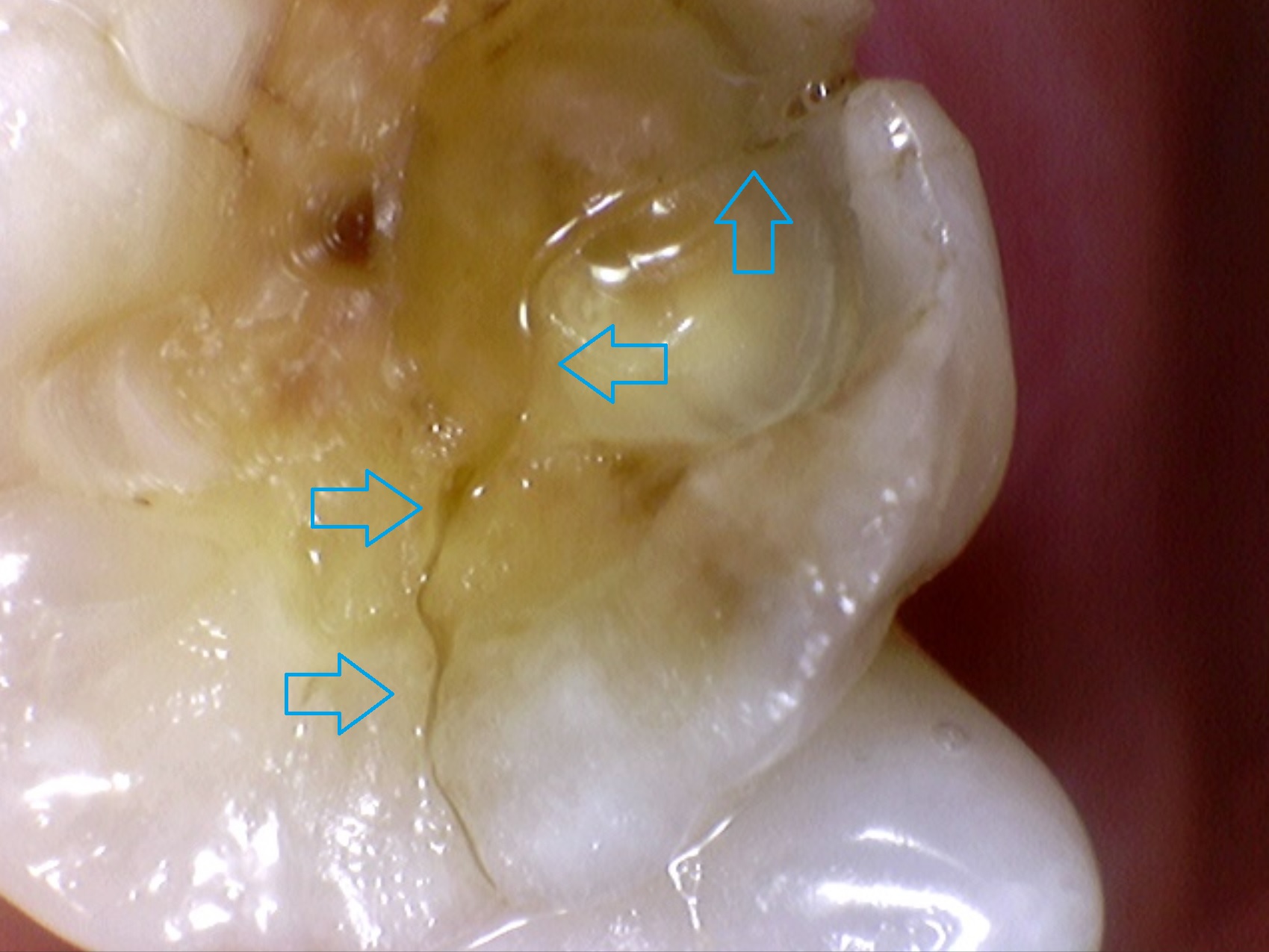 아직 치아가 두 조각 혹은 그 이상으로 갈라지기 전 응력을 받아 많이 약해진 균열 부위를 뜻합니다.